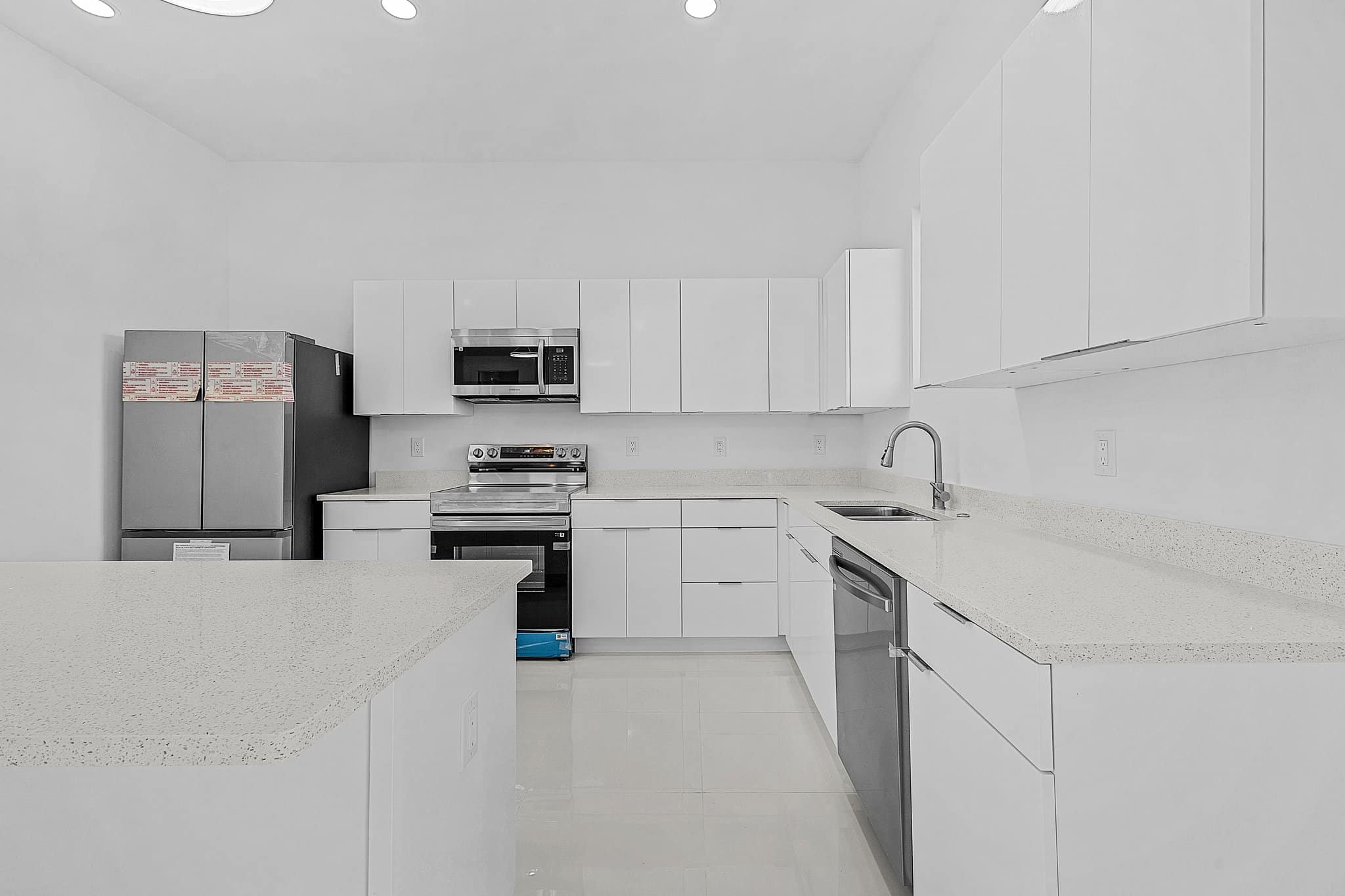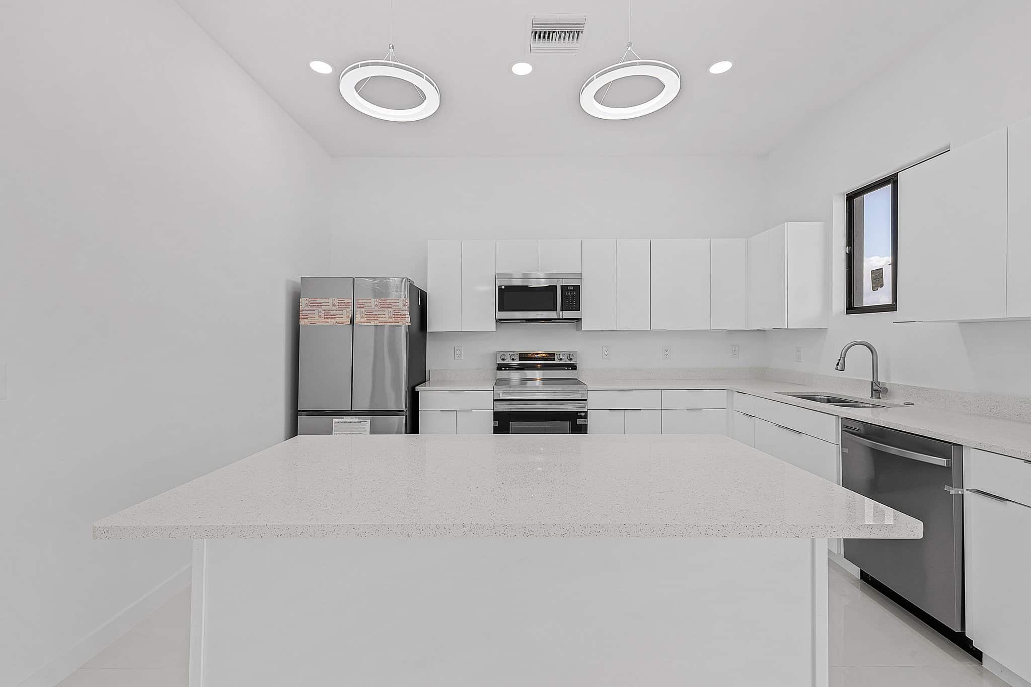 La vivienda cuenta con 3 amplias habitaciones y 2 baños completos, con acabados contemporáneos y materiales de alta calidad. Su cocina de concepto abierto está equipada con gabinetes modernos y electrodomésticos de acero inoxidable, conectando perfectamente con el área social y el comedor.